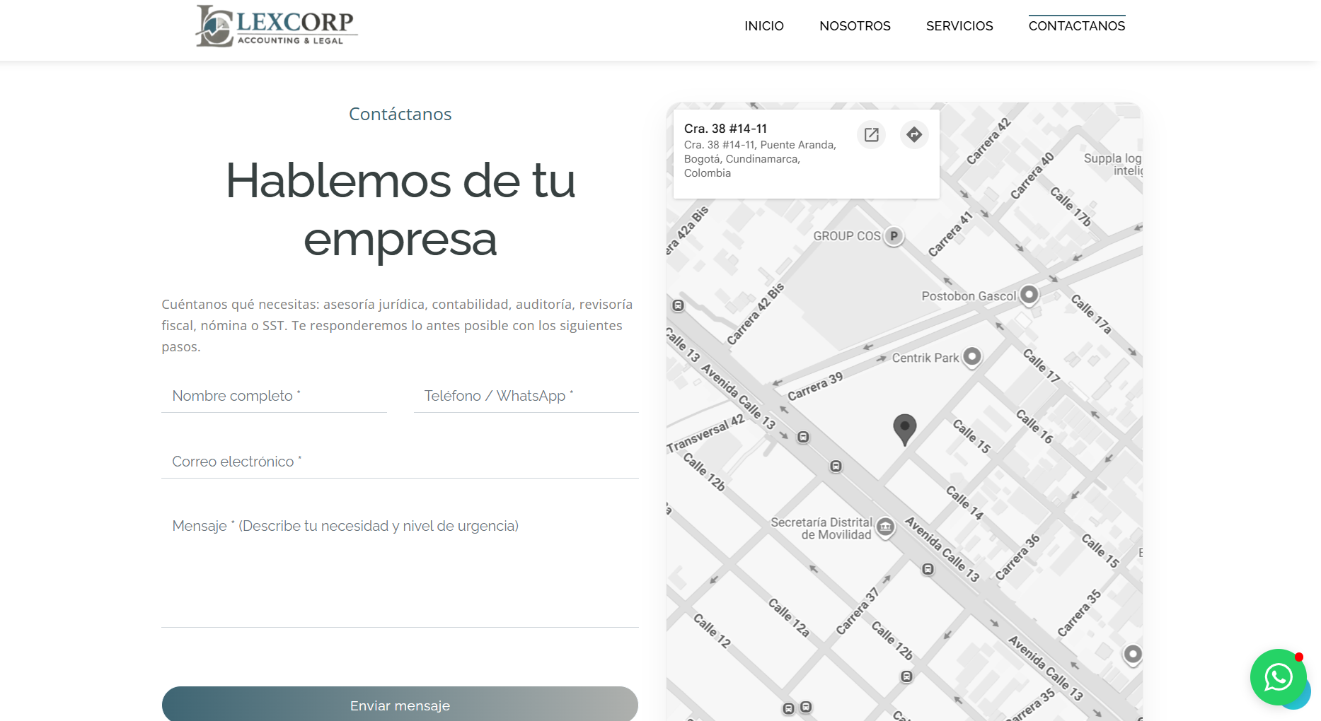 En Enithgma SAS trabajamos con empresas que desean fortalecer su presencia digital y proyectar confianza desde el primer contacto. Por eso, uno de nuestros proyectos recientes fue el desarrollo del sitio web de Lexcorp Accounting & Legal Consulting S.A.S, una firma especializada en servicios contables y asesoría legal.