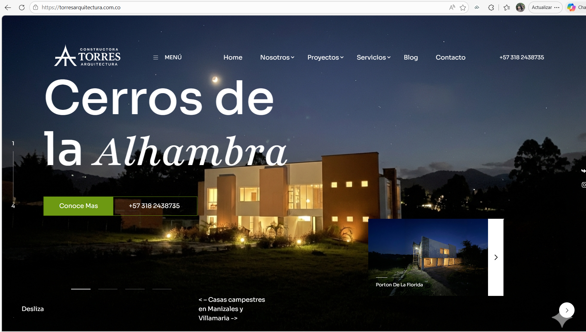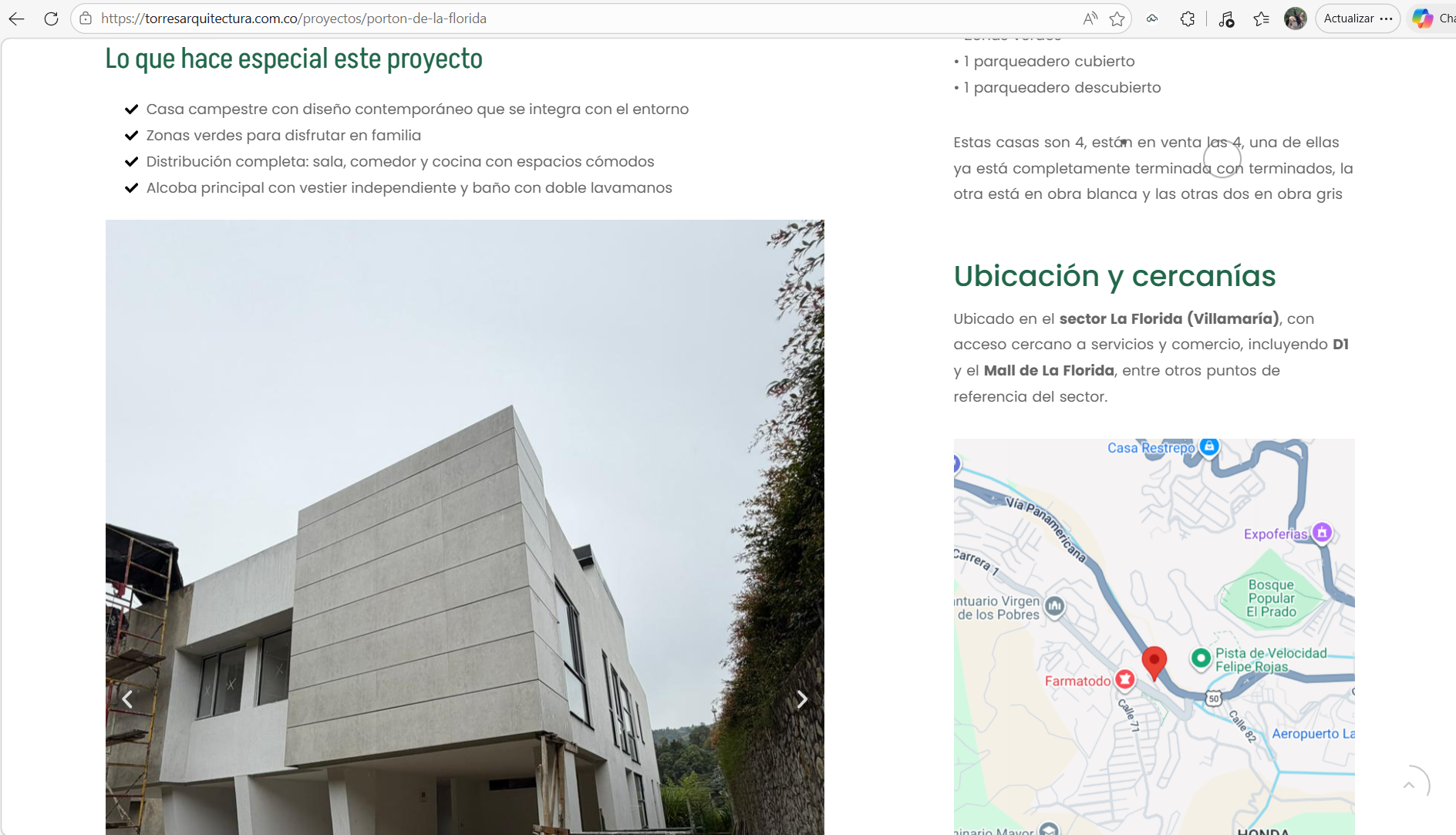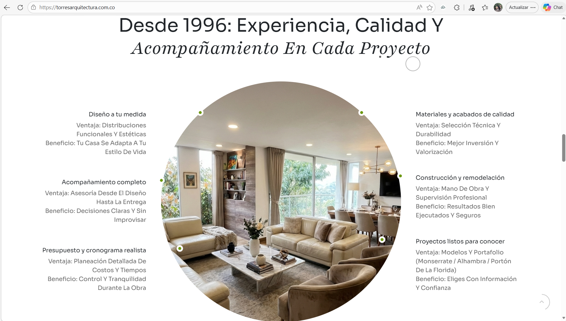 “proyectos en venta” + “servicios de diseño y construcción”, lo que aumenta la tasa de contacto y reduce fricción para el cliente.